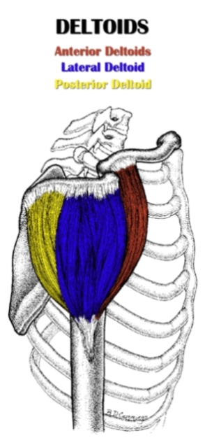 The deltoid is the largest and most visible of the shoulder muscles. It’s essentially three muscles in one, comprising a front (anterior), middle (lateral), and rear (posterior) head. The heads function together for more complex moves like an overhead press, but work more independently in some moves. Though it’s impossible to totally isolate any single muscle, I find there is less stress on my shoulder joints when I try to shift the emphasis from one head to another, focusing on the front, mid, and rear separately.